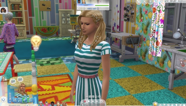 彼はいつでも早い段階で来てくれる優等生ですがいつでも怒ってます(笑)せっかちの王道を行くようなシムですが、きちんと自主的に鏡の前に行って気持ちを落ち着かせ、その後はニコニコ対応。亡きエリノーラ(ルビーの友達の方)同様、アンガーコントロールがきちんとできるおりこうさん。